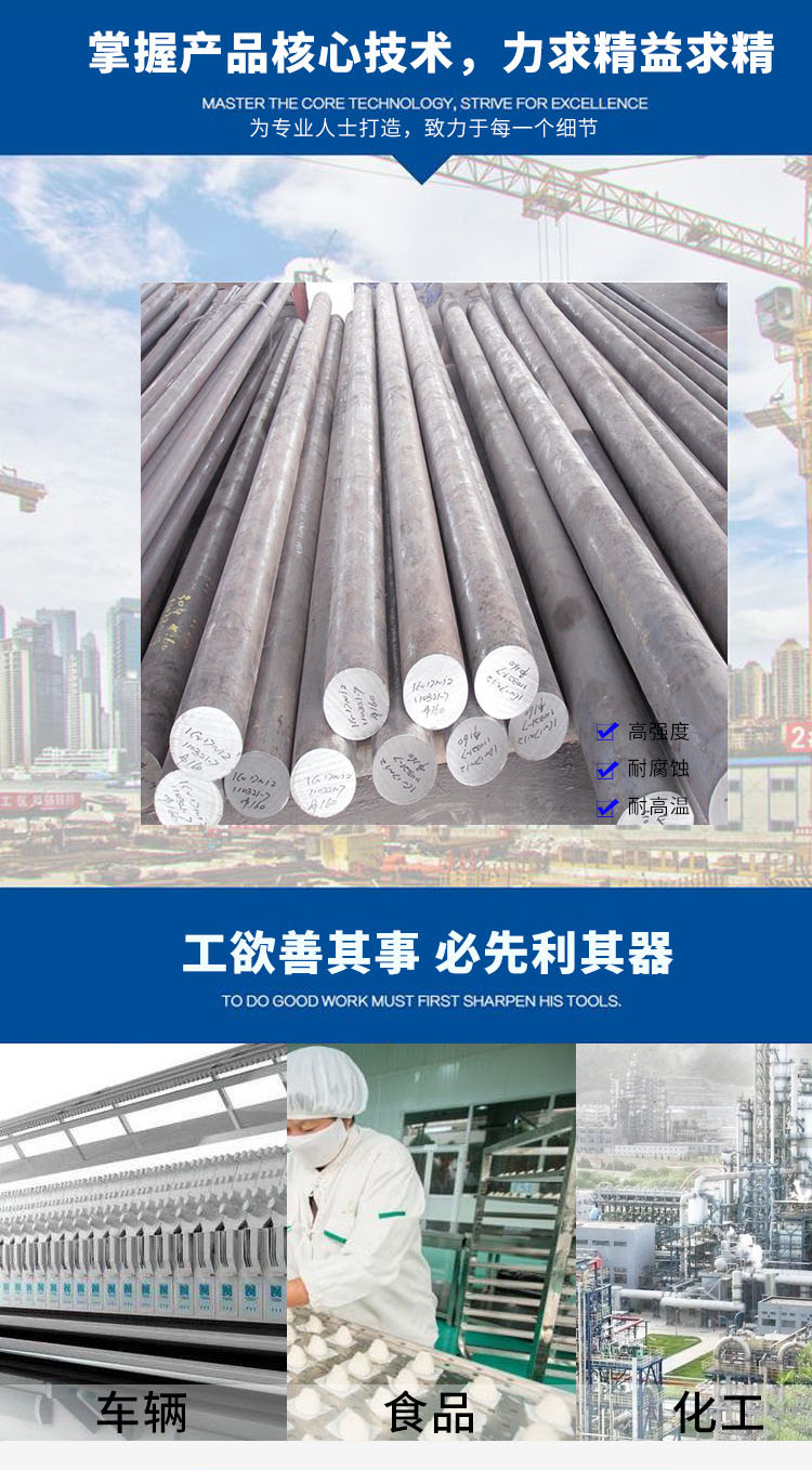 316不銹鋼棒應用前景廣闊,被廣泛用于五金廚具、造船、石化、機械、醫(yī)藥、食品、電力、能源、建筑裝潢、核電、航空航天、軍工等行業(yè)!。海水里用設備、化學、染料、造紙、草酸、肥料等生產(chǎn)設備;食品工業(yè)、沿海地區(qū)設施、繩索、CD桿、螺栓、螺母。316不銹鋼棒按生產(chǎn)工藝分可分為熱軋、鍛制和冷拉三種。熱軋不銹鋼圓鋼的規(guī)格為5.5-250毫米。其中:5.5-25毫米的小不銹鋼圓鋼大多以直條成捆供應,常用作鋼筋、螺栓及各種機械零件;大于25毫米的不銹鋼圓鋼,主要用于制造機械零件或作無縫鋼管坯。316不銹鋼棒分為316L不銹鋼圓棒,904L不銹鋼方棒,904L不銹鋼光亮棒904L 國內(nèi)牌號00Cr20Ni25Mo4.5Cu.隨用途而異。C含量<=0.02%或0.03%.具有較高的鉻含量和足夠的鎳含量,銅的加入使它具有很強的抗酸能力,尤其對氯化物間隙腐蝕和應力腐蝕崩裂有高度抗性