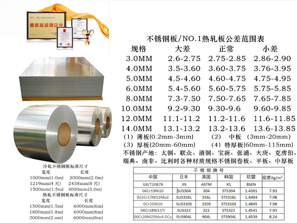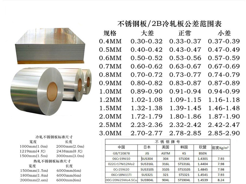 不銹鋼板按制法分熱軋和冷軋的兩種,包括厚度0.02-3毫米的薄冷板和3.5-100毫米的中厚板。